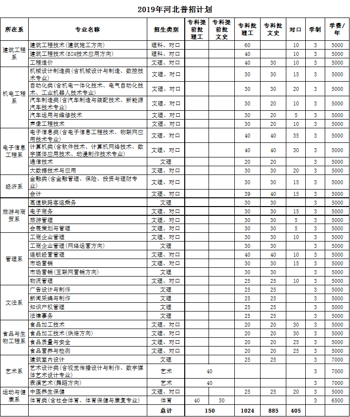 2019年河北普招招生计划