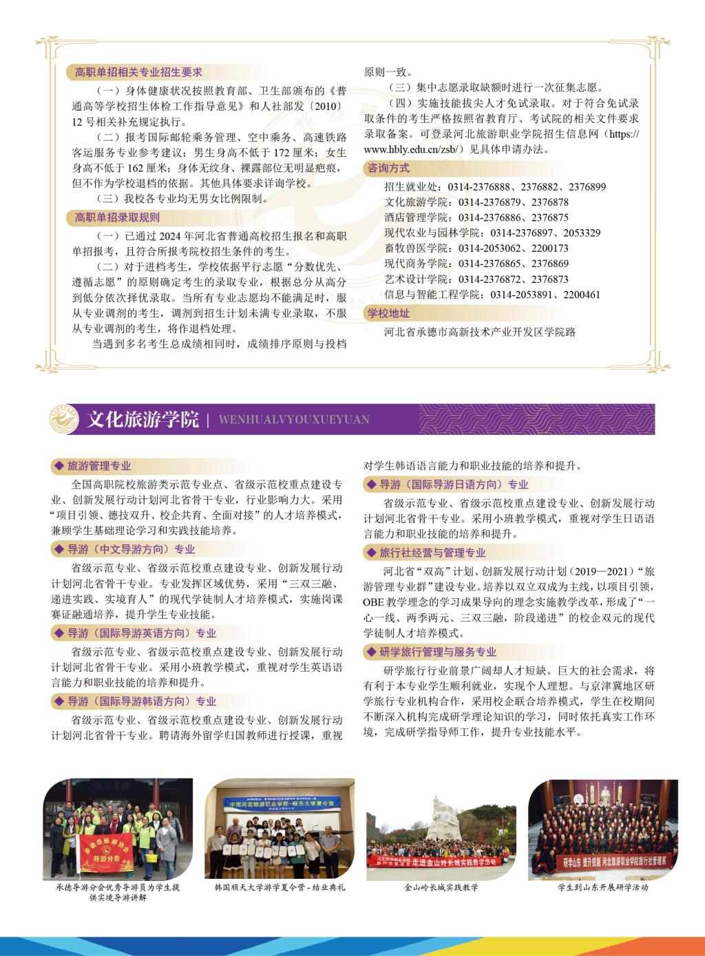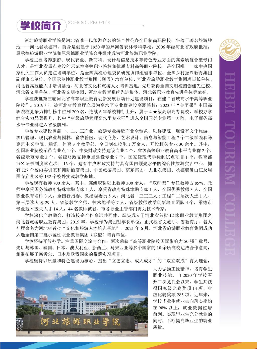 河北旅游职业学院2024年单招宣传册