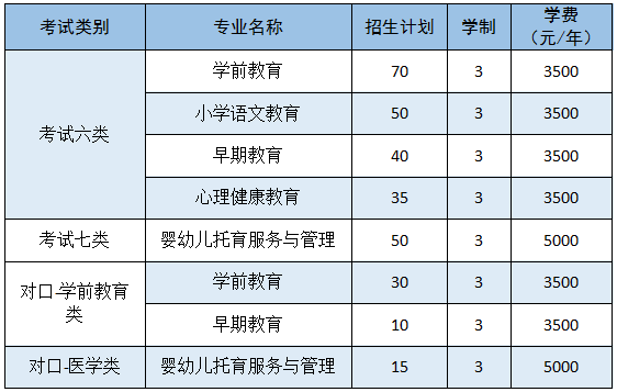 专业建设。学校现开设三年制学前教育、早期教育、婴幼儿托育服务与管理、小学语文教育、小学数学教育、心理健康教育、音乐教育、美术教育、体育教育和五年制学前教育等10个专业,逐步形成学前教育为主,小学教育、艺术教育为辅,社会服务类专业为补充的专业架构体系,初步构建起学前教育、小学教育、艺术教育、体育健康四大专业群。