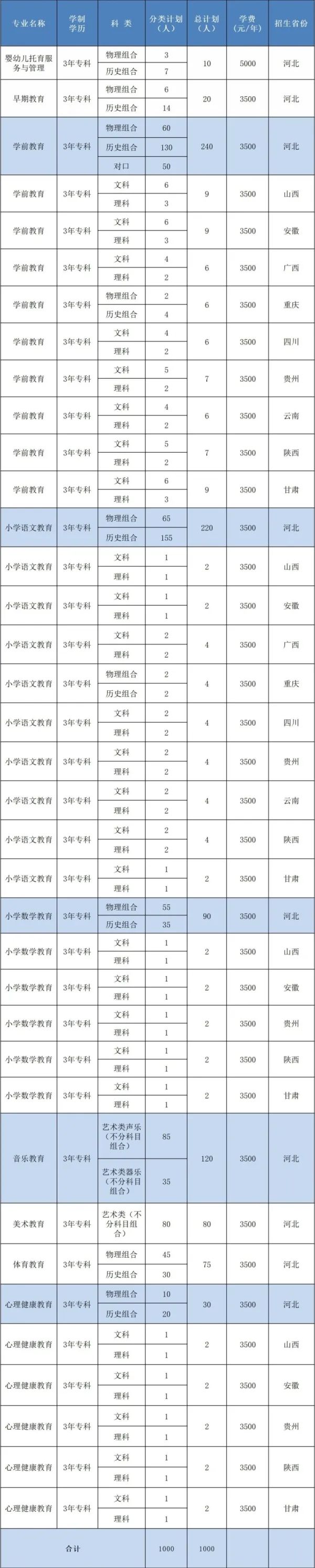 初中起点五年一贯制大专招生计划