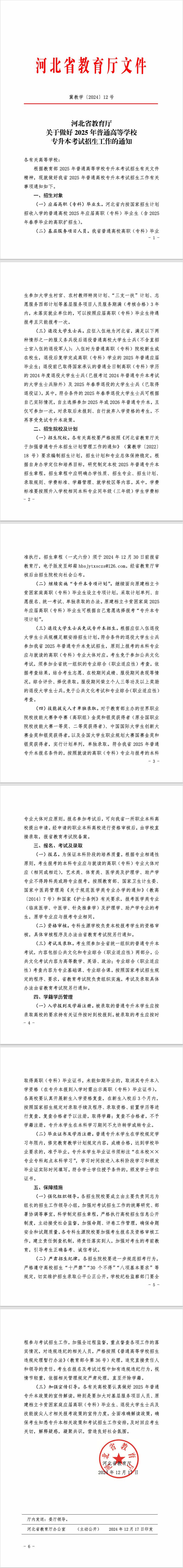 河北省教育厅关于做好2025年河北省普通高等学校专升本考试招生工作的通知
