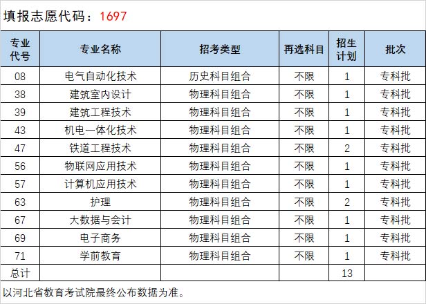 我院专科批征集志愿招生计划【河北省】