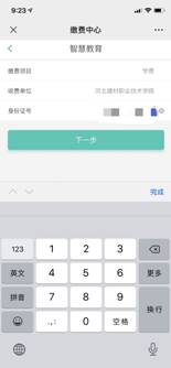 第二步:输入关键字(身份证号)选择收费项目(学费、住宿费)