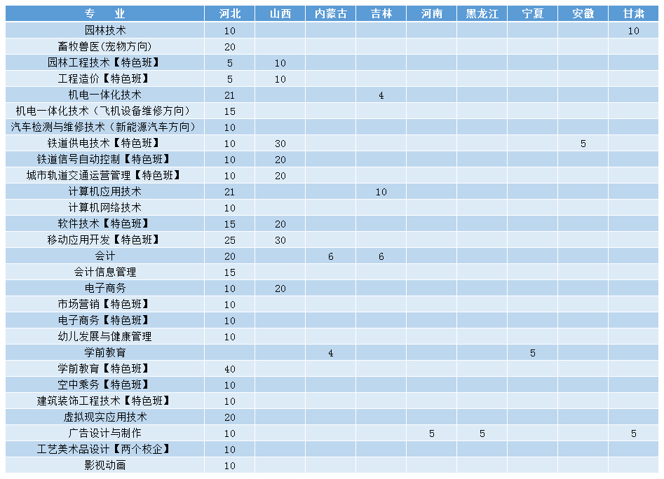 2020年统招招生计划