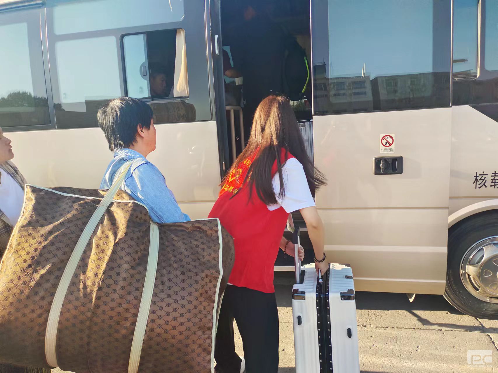 清晨七点,校团委青年志愿者早早到达火车站设立的接待点,随着车辆到站迎新工作随之开展。直至中午时分,志愿者们依旧不辞辛劳,顶着烈日守候在“沧州幼儿师范高等专科学校”的帐篷周围,不断地解答着新生、家长提出的各种问题,并且主动帮忙接过行李,带领新同学前往我们的校车。