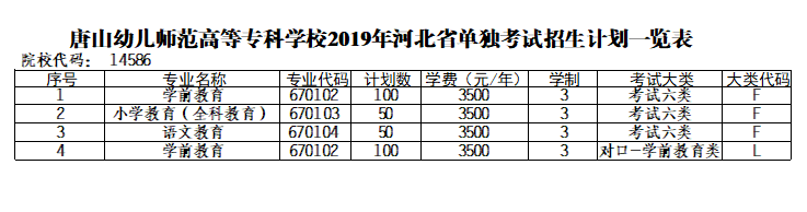 2019年单独招生计划