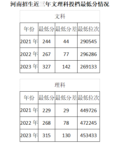 河南省招生录取近三年文理科投档最低分情况