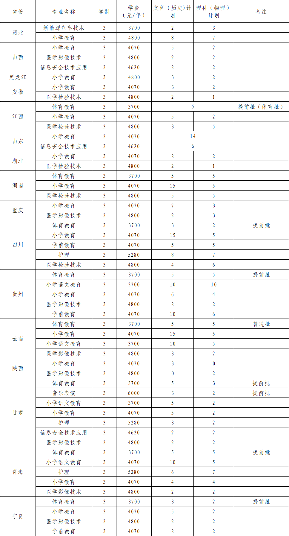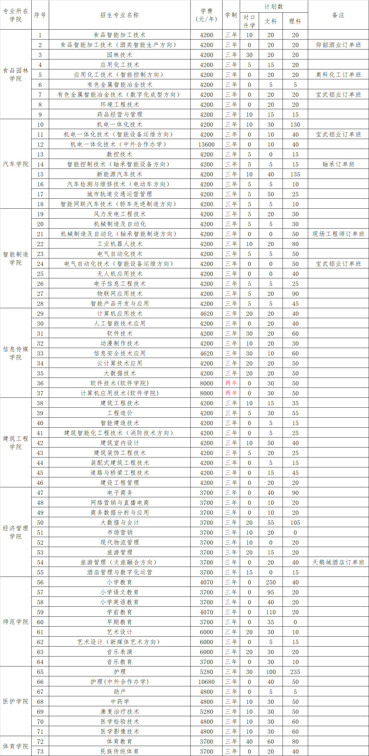 备注:体育专类专科、艺术类专科投档成绩按照河南省统一投档排序成绩计算办法执行
