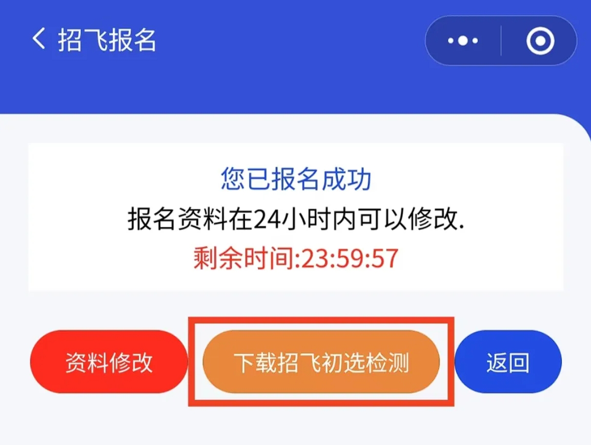 4. 点击“下载招飞初选检测表”,用A4纸打印,完成报名。