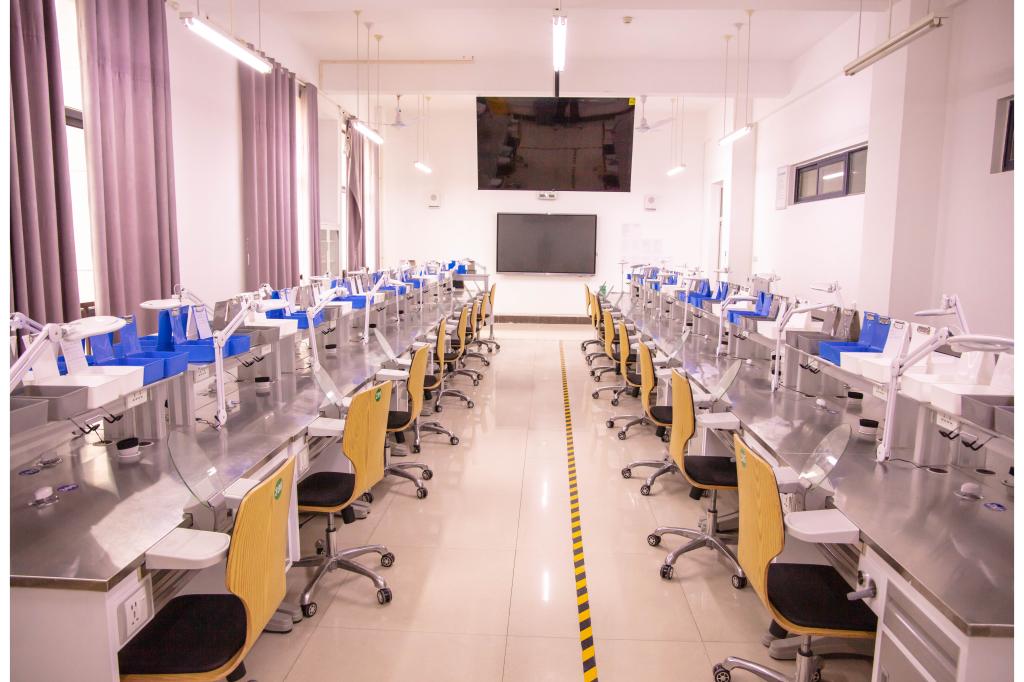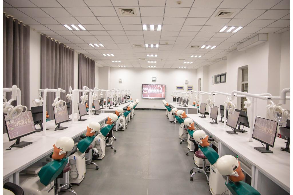 学院教学团队经验丰富、素质优良,其中校本部专任教师23人,附属医院和教学医院兼职教师11人,有河南省教育厅学术技术带头人1人。校内实训中心设施设备对应岗位装备、学习环境再现工作情境、训练过程还原操作流程,现有教学仪器设备总值2000多万元,已建成口腔基础医学、口腔临床医学、口腔修复学、口腔正畸学、口腔护理学、口腔影像技术、器械消毒室、口腔种植手术室、仿真头模室、高级技工室、数字化评估室、CAD/CAM室、3D打印室等实训室31个、工位数1000余个,开设实训项目近110个。口腔解剖标本室建设水平业内领先,大力推广数字化标本应用,为学生打造时时处处可学的“掌上课堂”。校外建有郑州大学第一附属医院(河南省口腔医院)、南京医科大学附属南京第一医院、康泰健美医疗科技有限公司、现代牙科器材有限公司、尚善口腔、咿呀英博口腔、瑞尔口腔等实习教学基地。