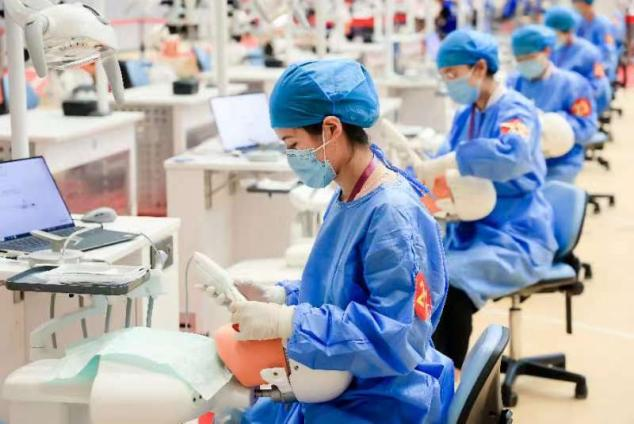 学院以岗位胜任力为导向,推行“岗课赛证”融通的技术技能人才培养模式。将工作岗位的要求与课程标准融通,不断优化教与学生态。将国家和行企各类赛项中的新技术、新标准、新规范与课程标准融通,不断推升教与学水平。将口腔执业医师资格证书考核标准、口腔修复体制作工职业技能等级证书考核标准与课程标准融通,不断改进教与学评价。专业教师依据课程性质和内容特点,灵活采用案例教学、项目教学、情境教学、理实一体教学等方法,并充分利用现代信息技术提高课堂教学质量。学院充分发挥资源集聚优势,建有规范化口腔种植、口腔显微治疗、牙周治疗、口腔护理等技术平台,面向在职口腔医护人员开展职业培训和继续教育,年培训人数达到在校生数量的2倍以上。学院推行专业教师班级导师制,给予学生及时、精细、高效的学业指导。学院以“齿生相依”口腔健康教育品牌为依托,积极推动“第二课堂”建设,常态化指导学生社团开展专业知识学习和技能训练,并组织开展健康科普、义诊和大学生社会实践活动。毕业生综合素质佳、对口就业高、职业发展好、社会评价优,还可通过“专升本”途径考入本科院校继续深造。