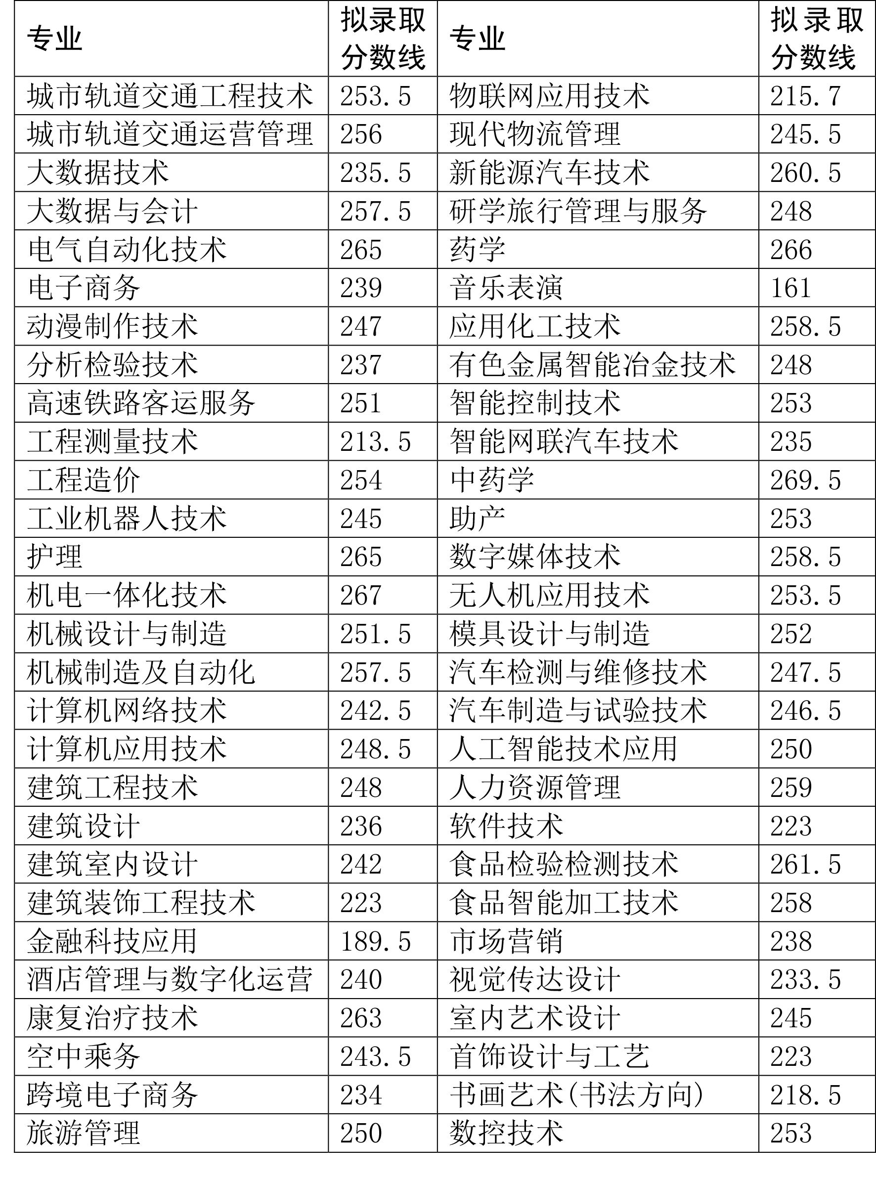 注:遇到总分相同的考生,按职业技能(职业适应性)、文化素质、语文、数学成绩从高到低依次录取(见2024年单招章程第十九条)