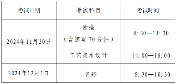 美术类专业考试与普通高招艺术类专业省统考统一安排,考试时间安排如下: