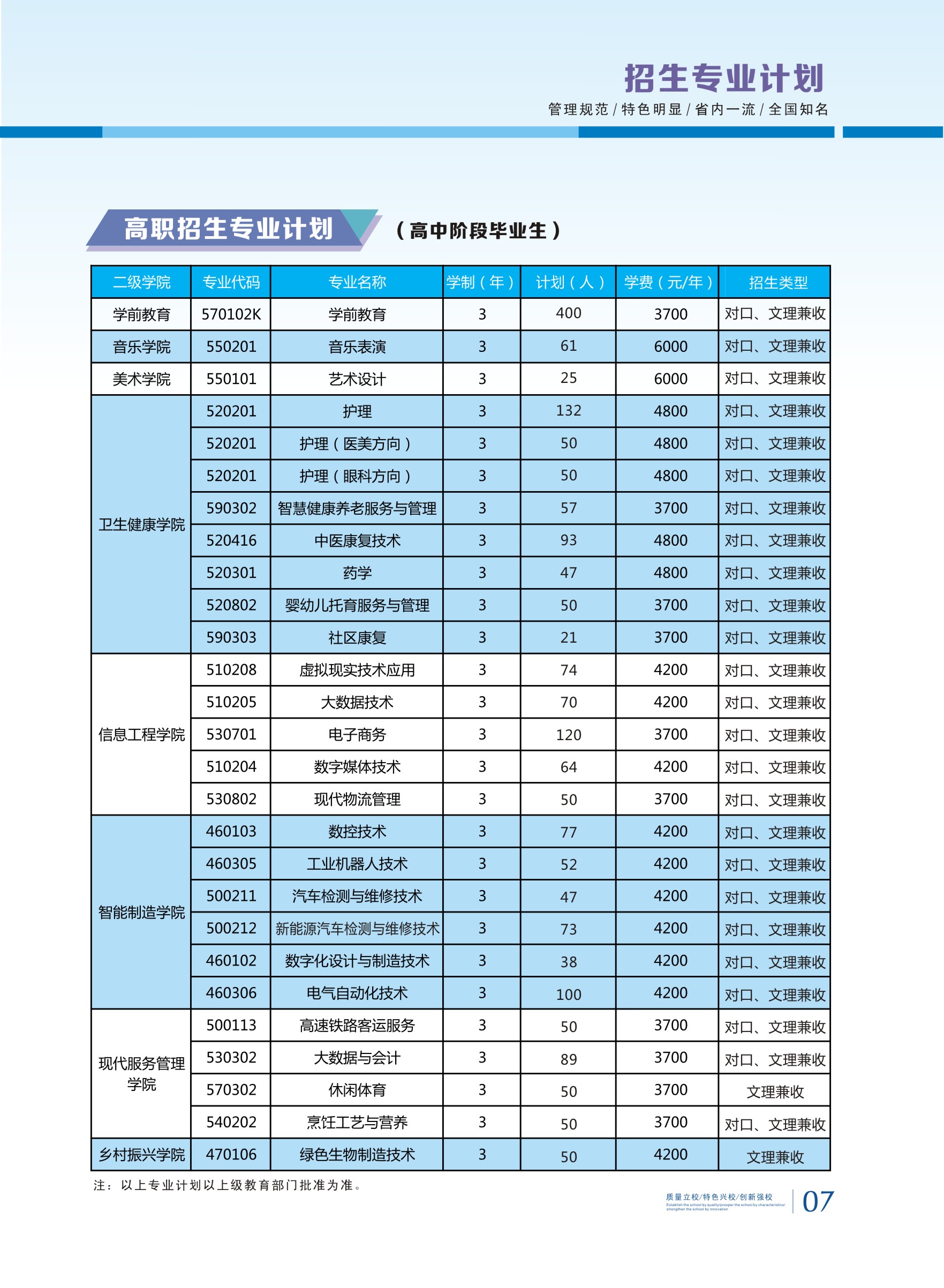 南阳科技职业学院2023年高职高专批次(含对口)招生专业及计划