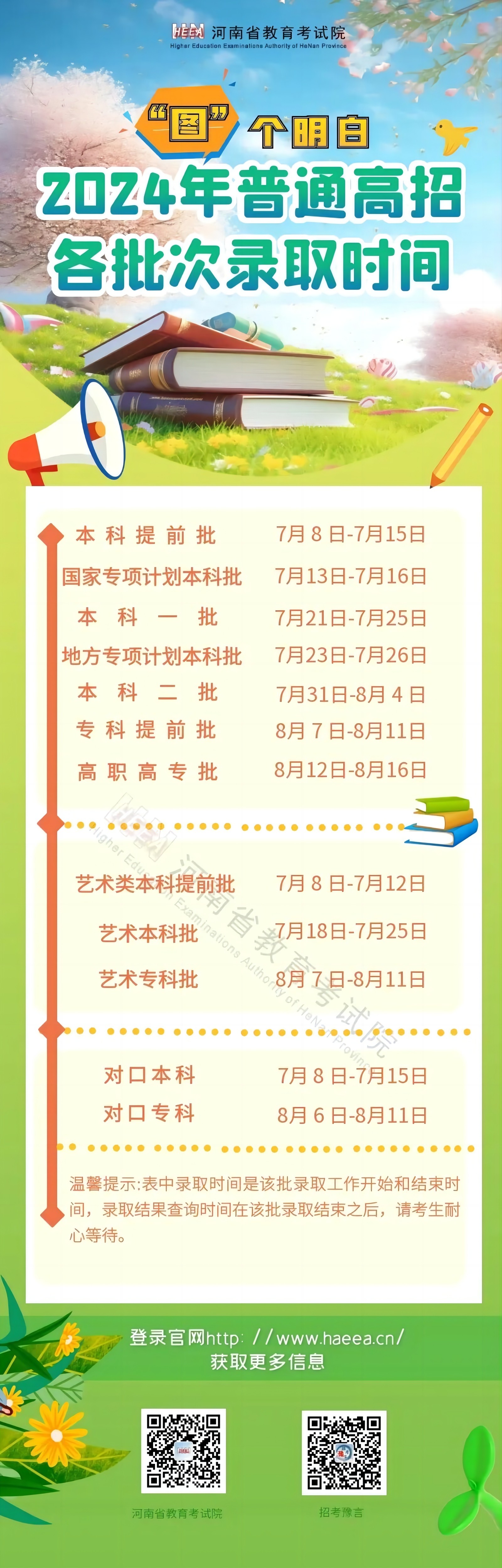 2024年普通高招各批次录取时间