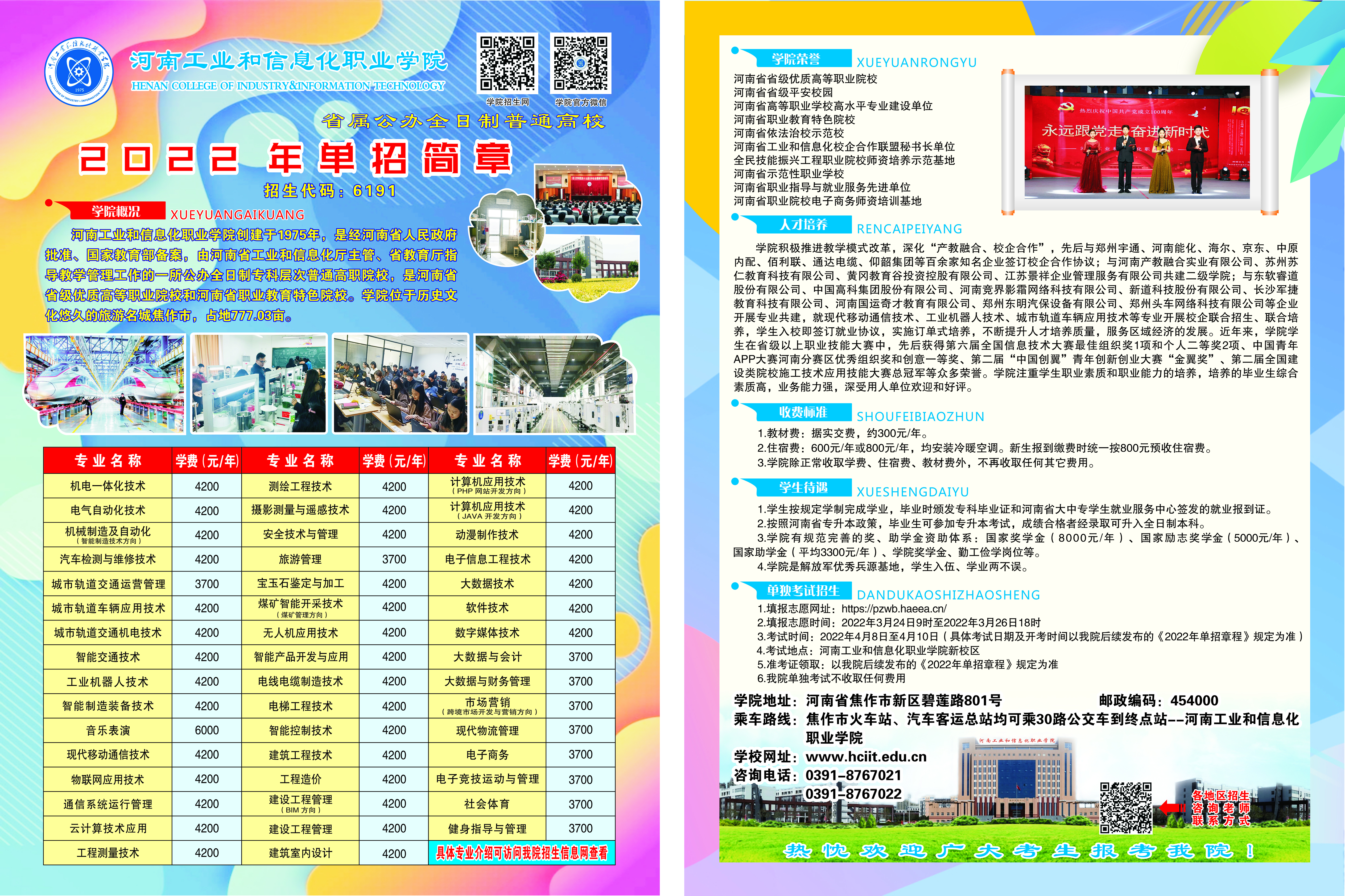 河南工业和信息化职业学院2022年单独考试招生简章(单页版)