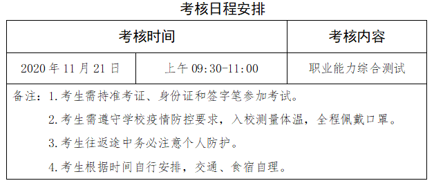 第十二条招生对象 1.已通过2020年河南省普通高考(含对口招生)报名,未被普通高考(含 对口招生)、高职单招等其他类型的普通高校招生考试录取的考生。 2.已通过2020年高职扩招补报名的考生。 3.本次我校招生专业按面向人群不同只招收A、C类,A类为退役军人可报专业类,C类为其他(含应往届高中和中职毕业生、农民工、下岗失业人员、企业在职职工等)群体可报专业类。 第十三条考试时间、考核科目及考核办法。按照教育部关于高职扩招的要求和国家教育考试的规定和标准,针对不同群体特点和受教育状况,组织命题、考试。我院2020年高职扩招单独招生考试形式为职业能力综合测试,总分150分,考试统一安排在 2020年11月 21 日(星期六)进行。