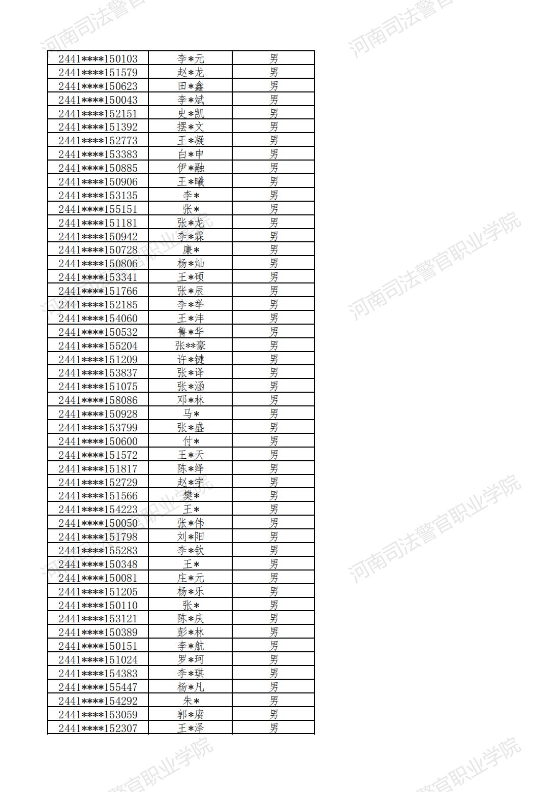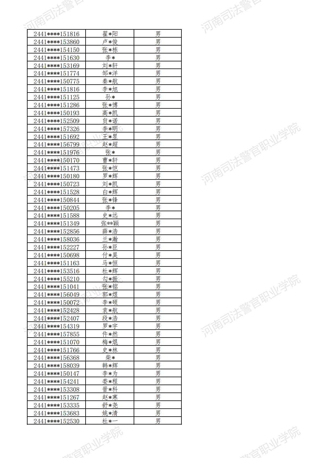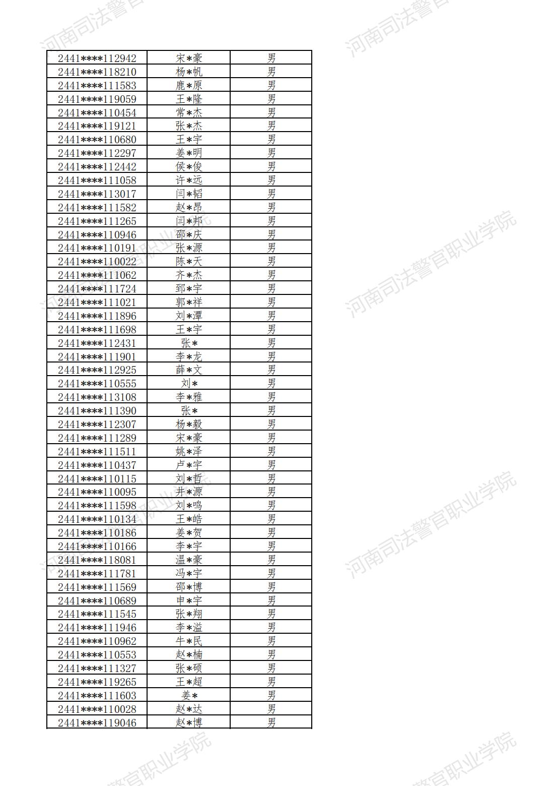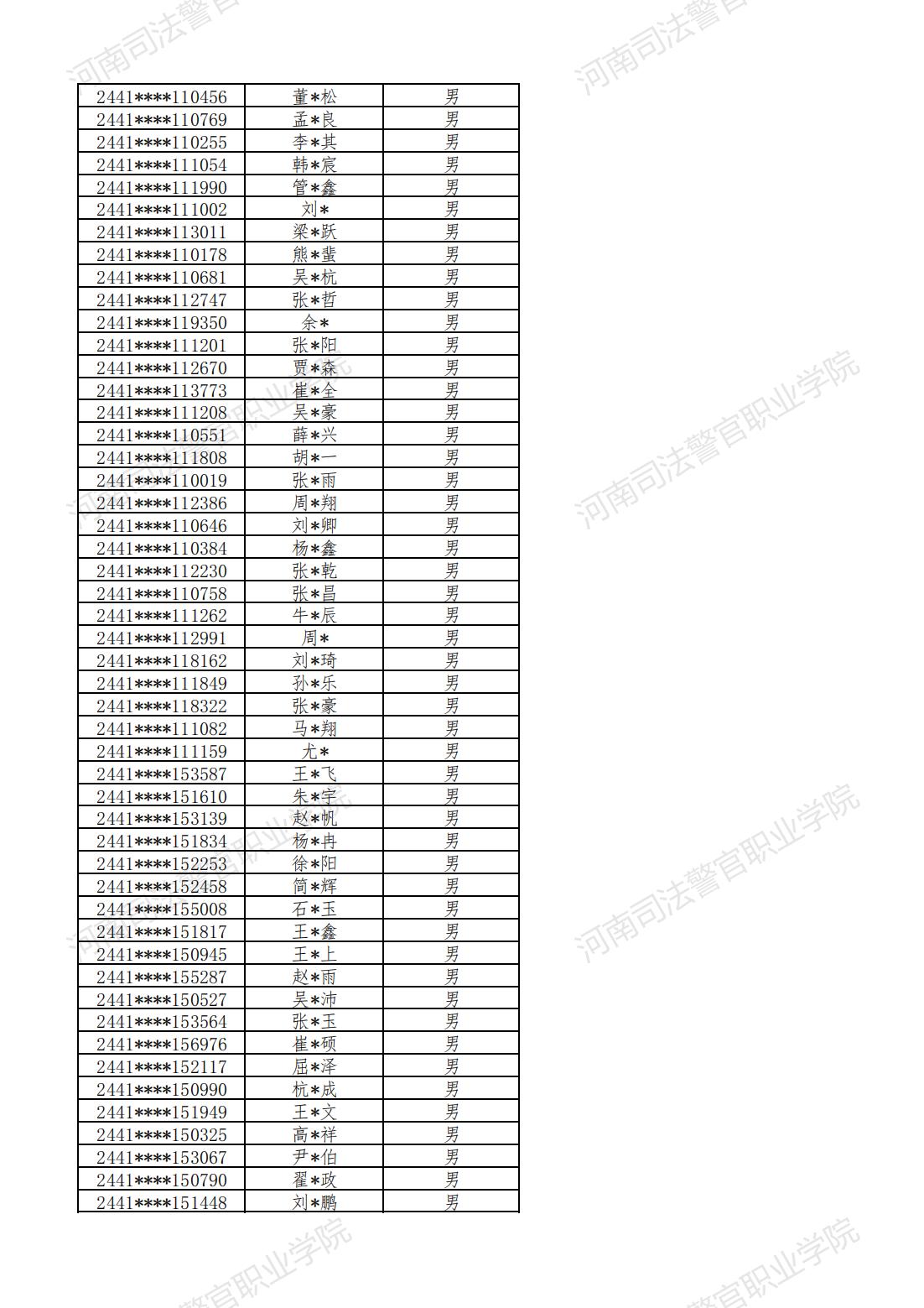 河南司法警官职业学院2024年提前批次面试、体检和体能测试合格名单