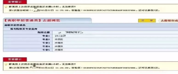 志愿保存成功,志愿才有效。志愿保存成功后,在规定的时间内考生还有2次修改志愿的机会。志愿保存成功,菜单“填报志愿”会变成“浏览志愿”,工作进度的“点击填报”会变成“点击查看”,同时,工作进度下方的收件箱——个人信息中会收到一条信息。考生在志愿填报前一定要认真查看我院招生章程,了解专业招生计划和收费标准等。