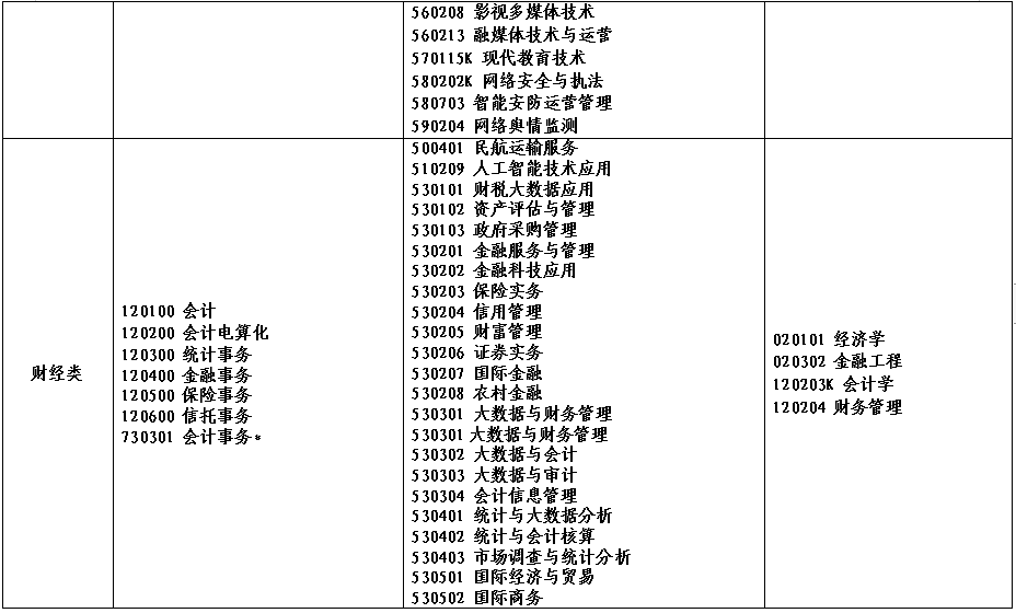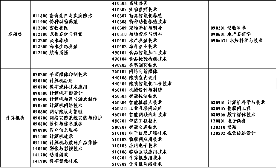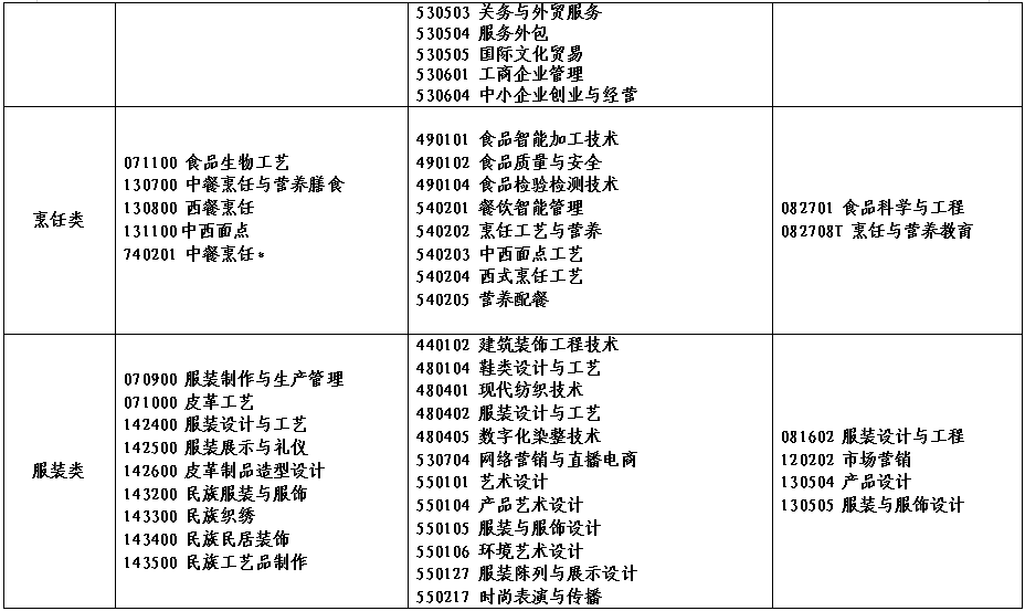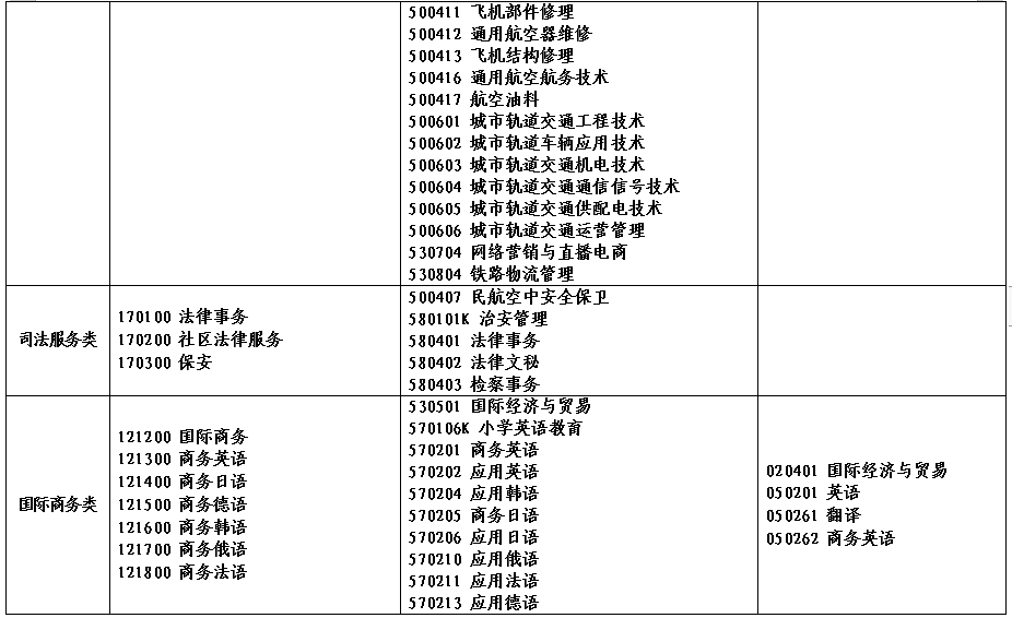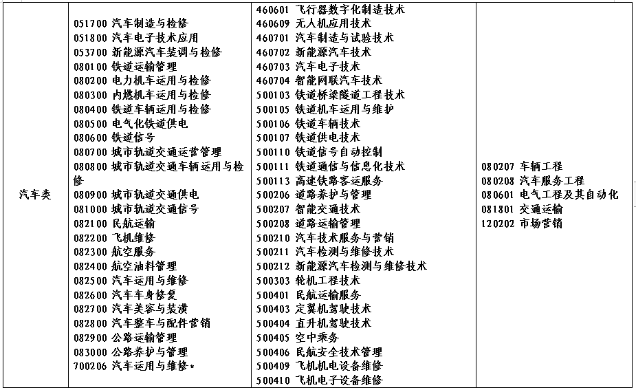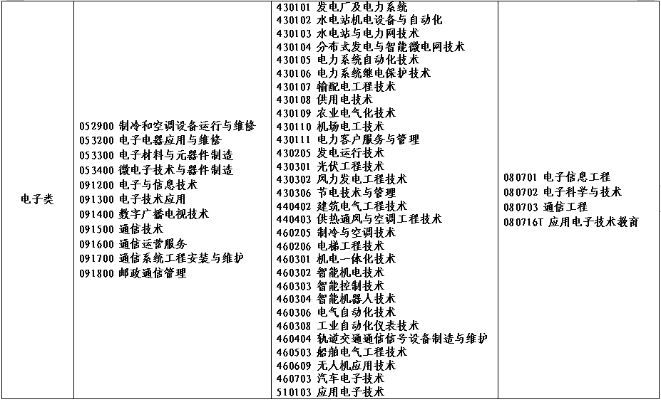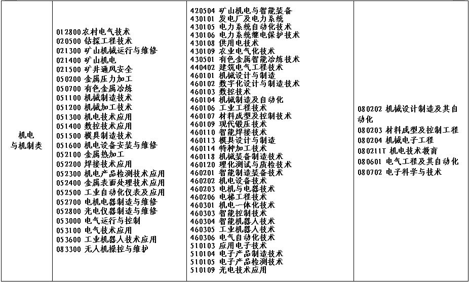 河南省2022年对口招收中等职业学校毕业生进入普通高等学校学习专业对照表