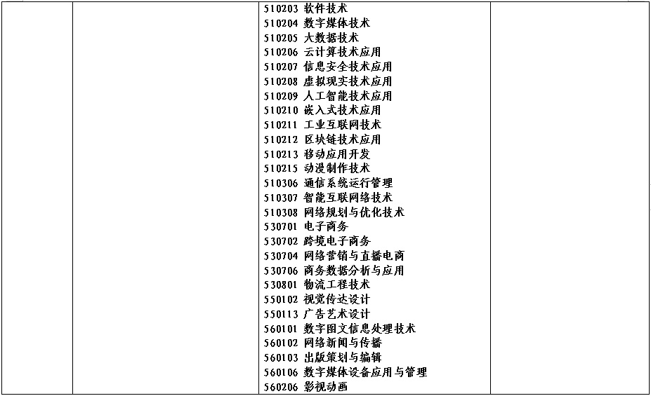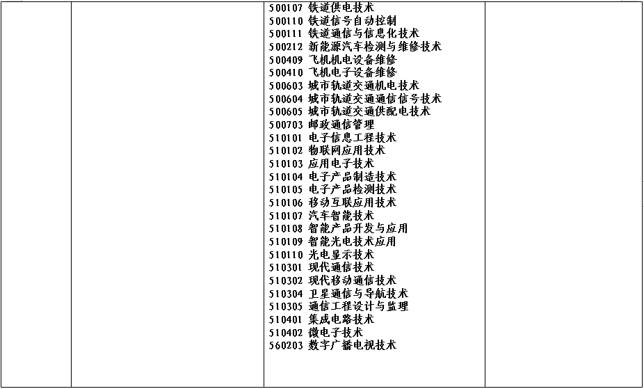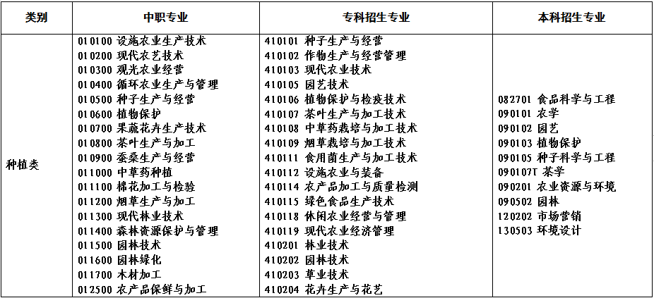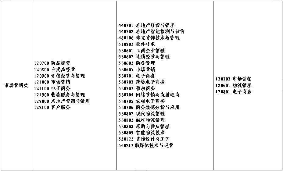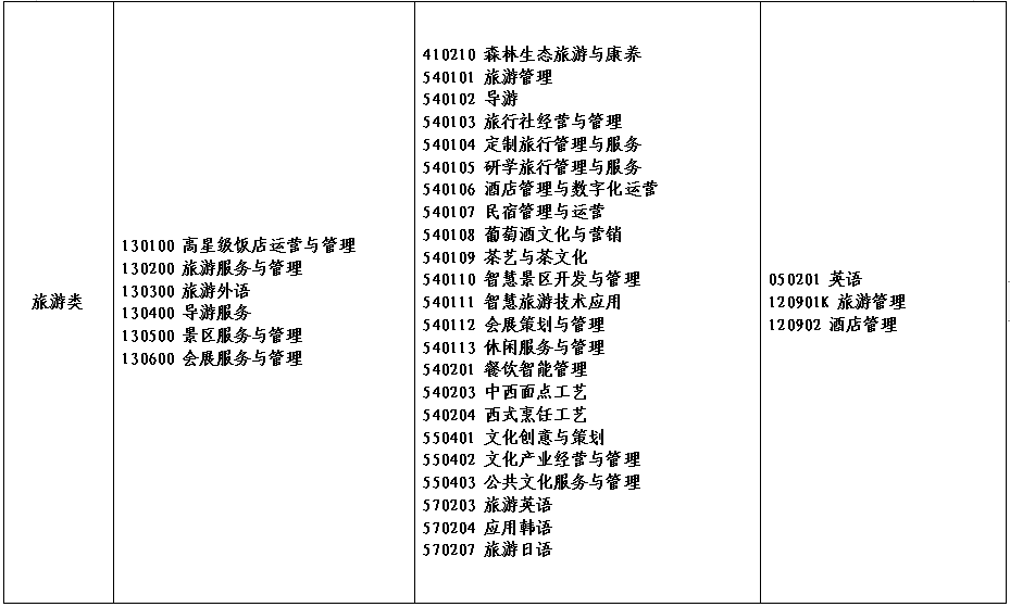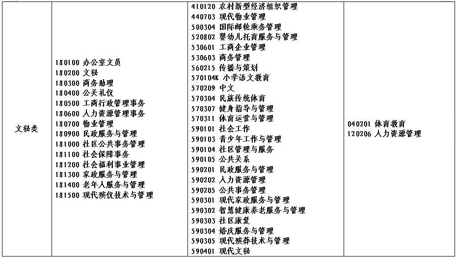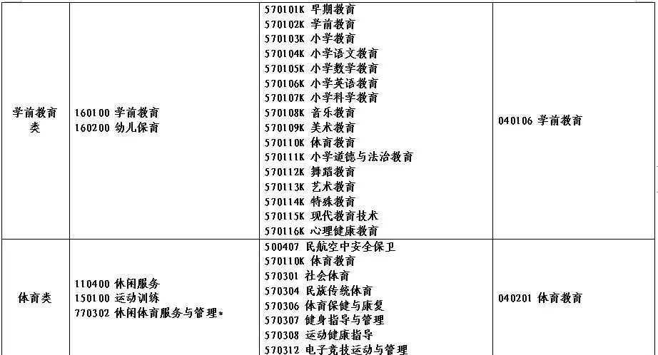 河南省2022年对口招收中等职业学校毕业生进入普通高等学校学习专业对照表