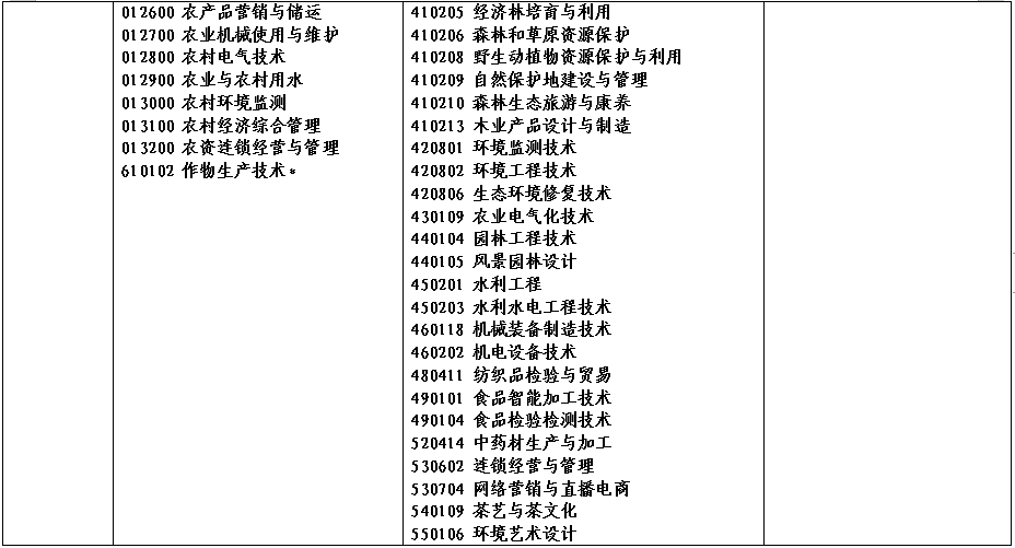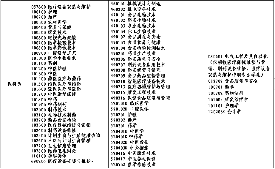 备注:中职专业名称后加“*”的为2021年入学的一年制中等职业学校毕业生使用《职业教育专业目录(2021)》所对应专业信息。