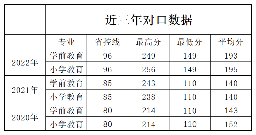 驻马店幼儿师范高等专科学校对口招生历年分数线