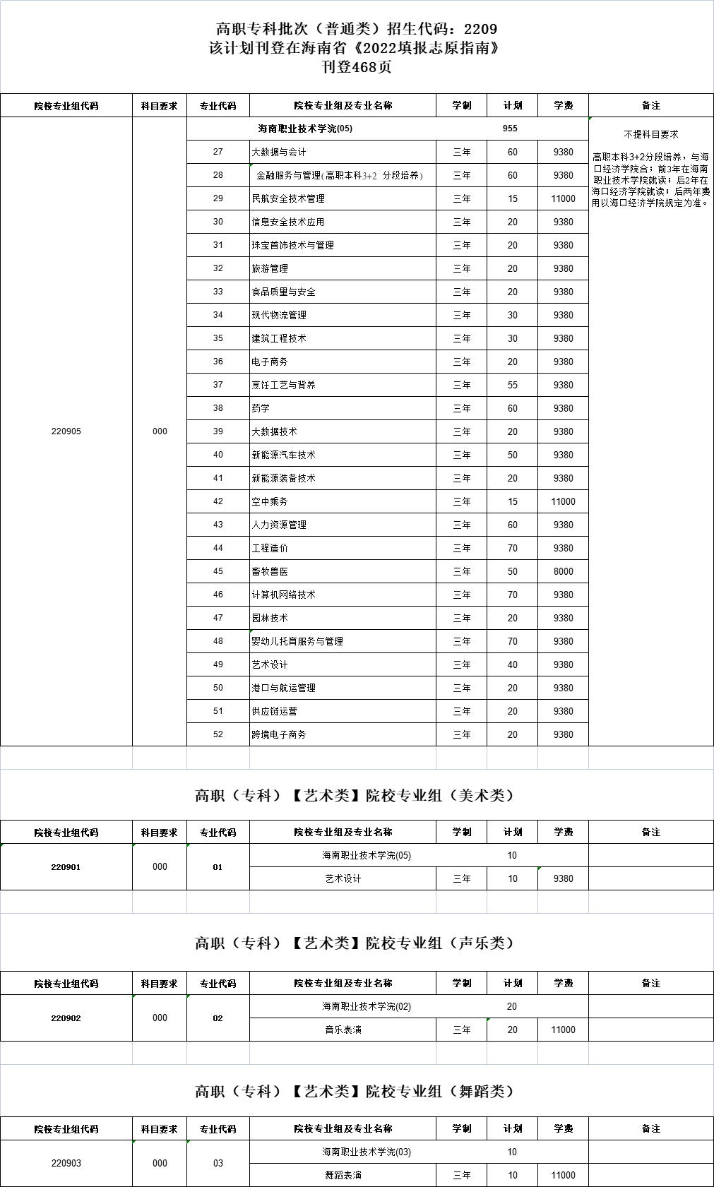 2022年海南省高职专科批次(普通类)招生代码:2209 该计划刊登在海南省《2022填报志原指南》