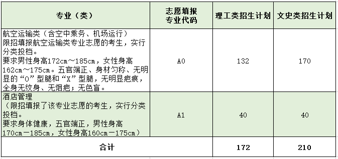 温馨告知:航空运输类和酒店管理类,因对考生身体条件有要求,实行分类投档,录取分数线通常低于普通文理类录取分数线。空中乘务专业学费为6500元/年,机场运行、酒店管理专业学费为5000元/年。