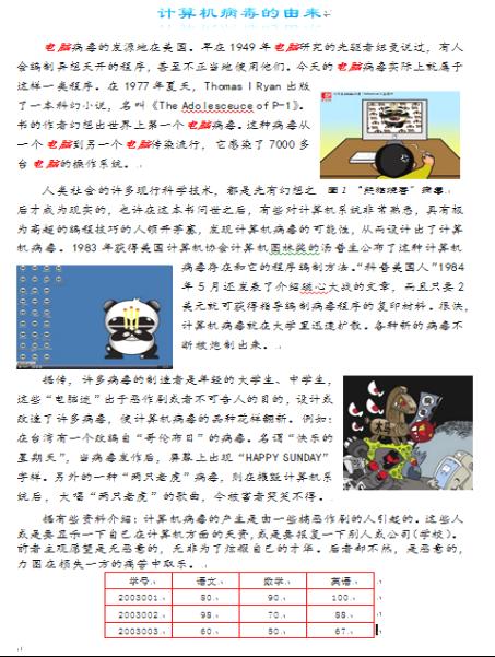 (6)给第一张图片加入题注“图1 “熊猫烧香”病毒”。(评分标准:正确操作得分1,满分1分)