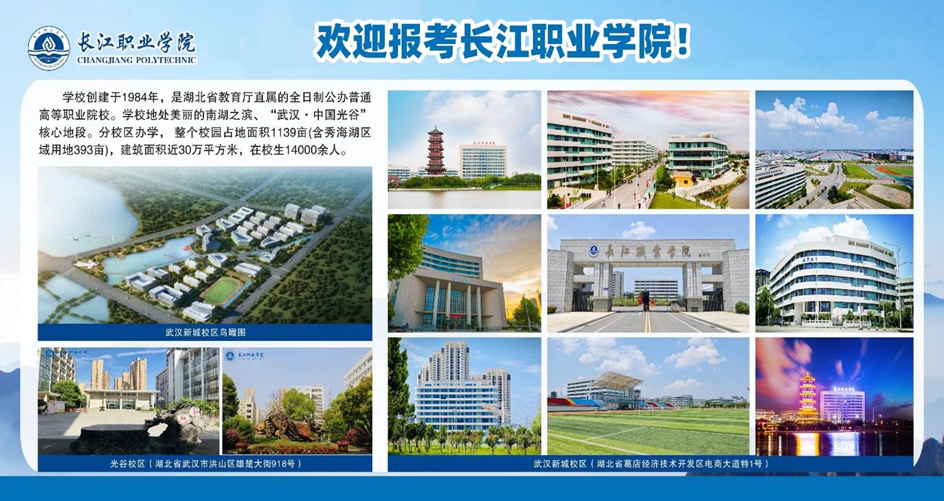 长江职业学院是国家教育部批准独立设置、湖北省人民政府主办、湖北省教育厅直属的全日制公办普通高等职业院校。办学历史始于1984年的湖北经济管理大学。1999年7月,教育部批准以湖北经济管理大学的办学基础设立长江职业学院;2015年6月,湖北省政府将创办于1975年的湖北省医药学校整体并入长江职业学院。