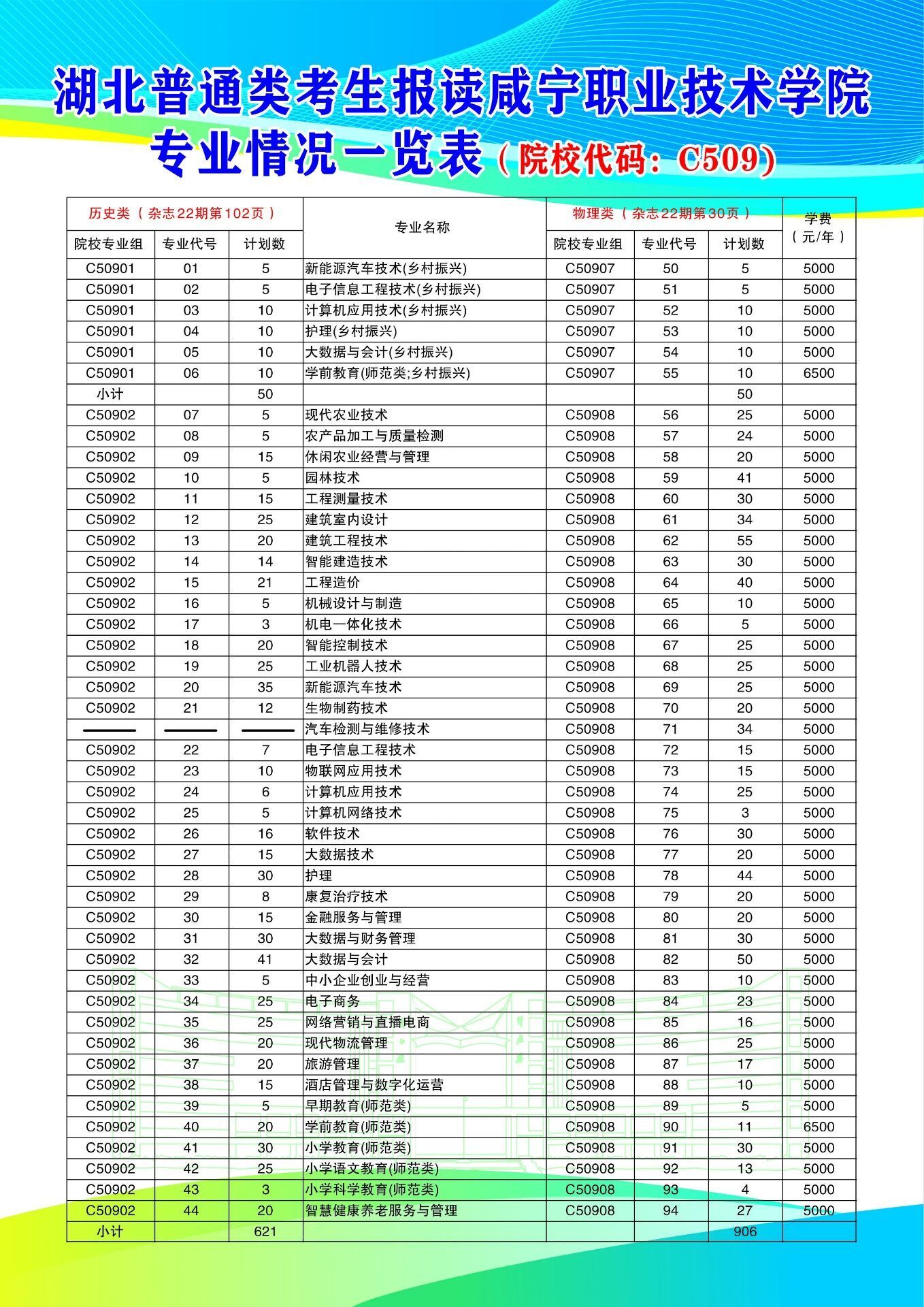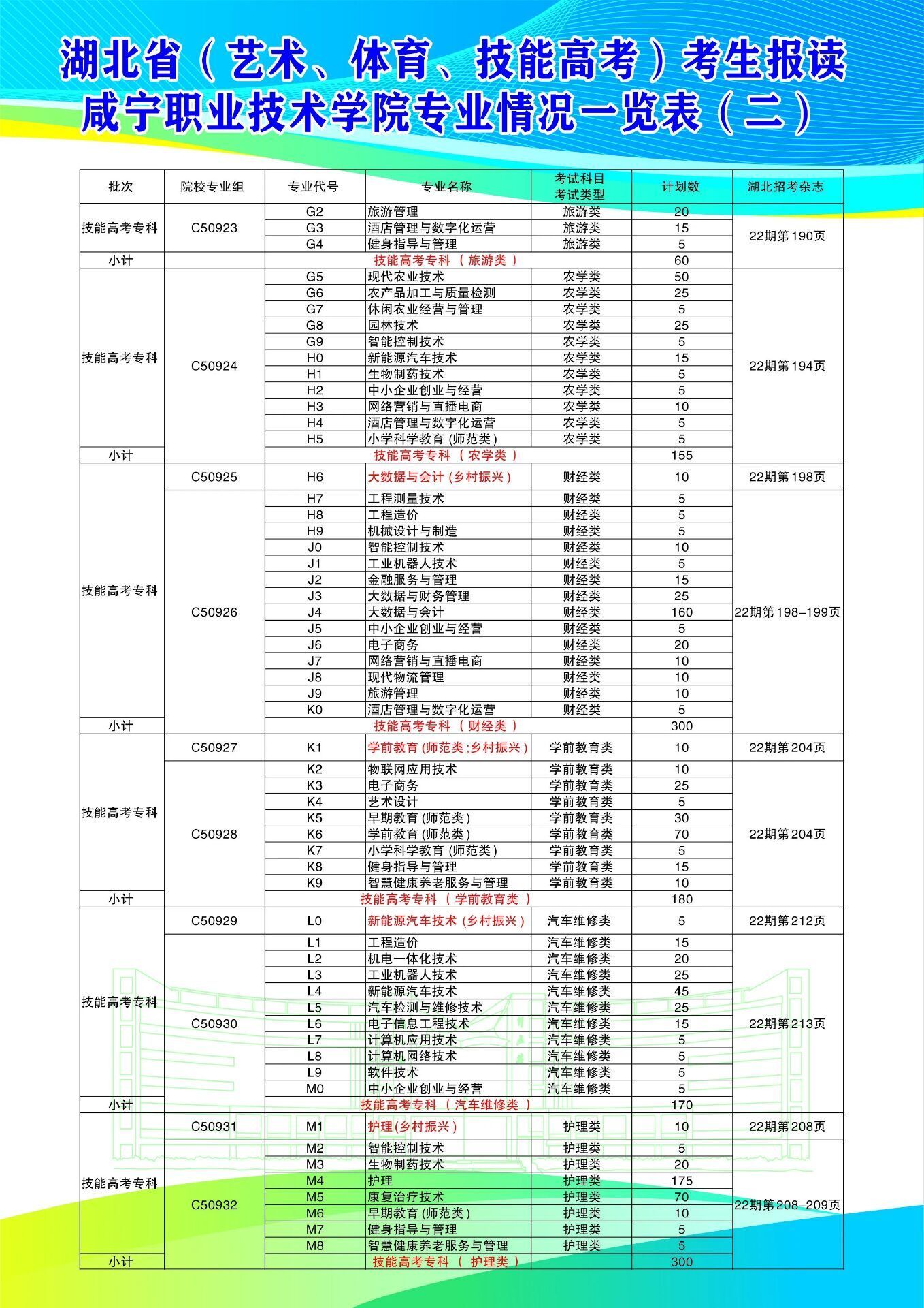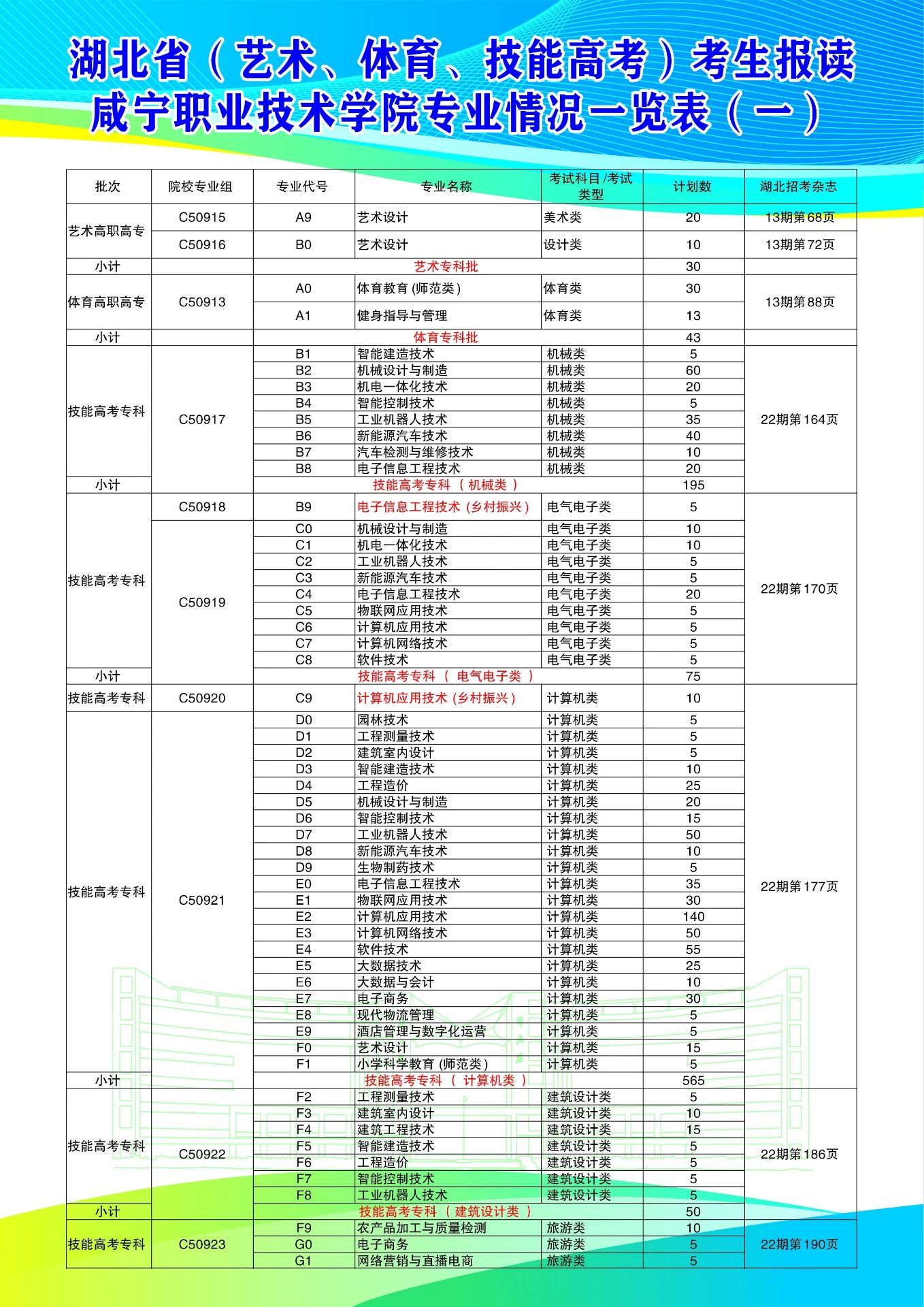 2024年咸宁职业技术学院专业代码及计划数