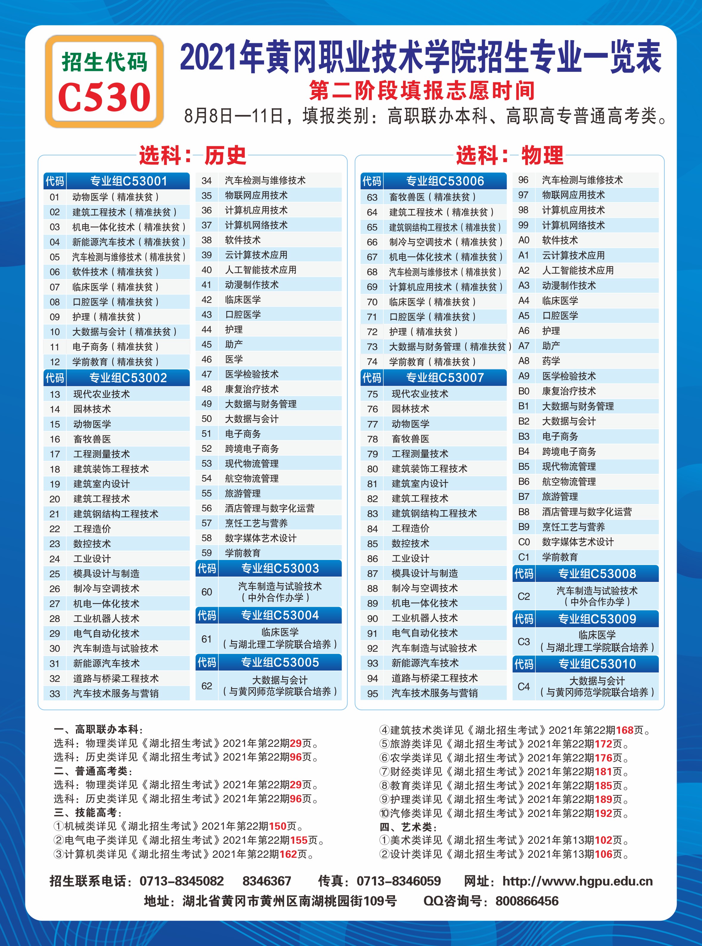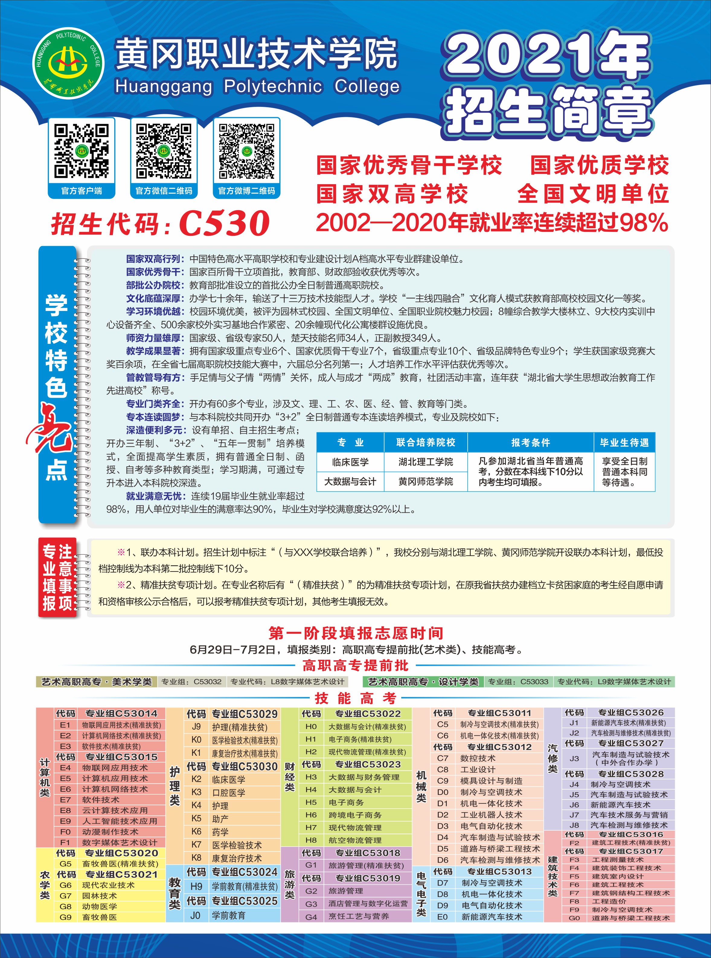 2021年黄冈职业技术学院招生专业一览表(湖北) | |||||