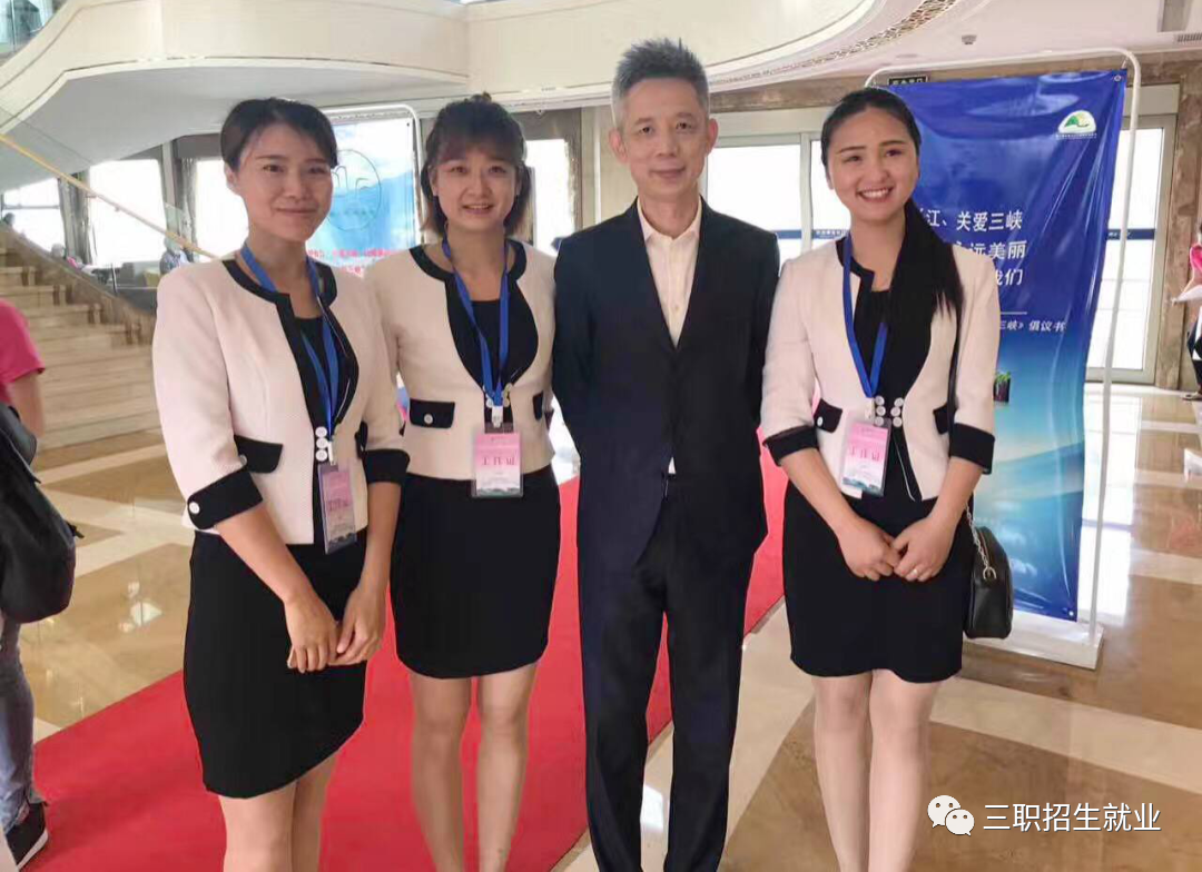 旅游管理毕业生高晴(右一)参与宜昌长江观光国际旅行社重大接待活动