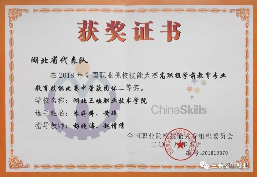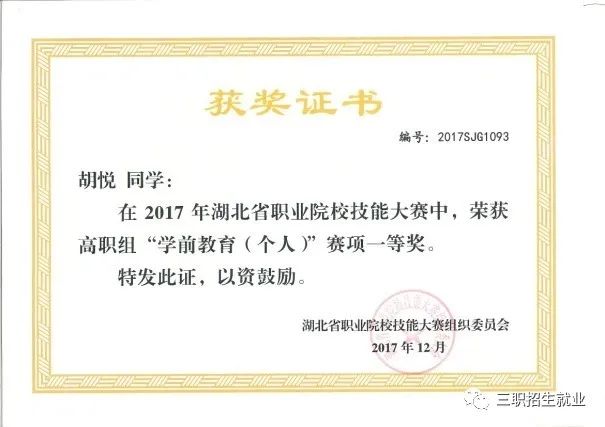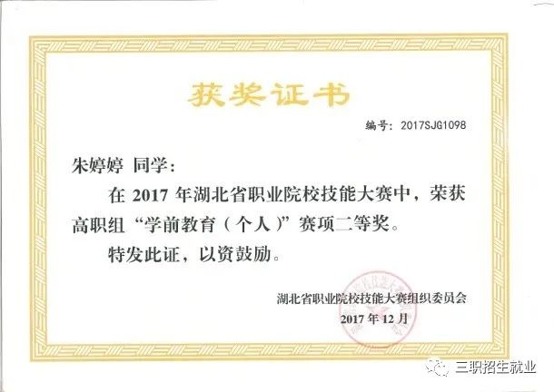 2017年首届湖北省学前专业教育技能大赛获得一等奖1个、二等奖1个1位教师获得优秀指导教师