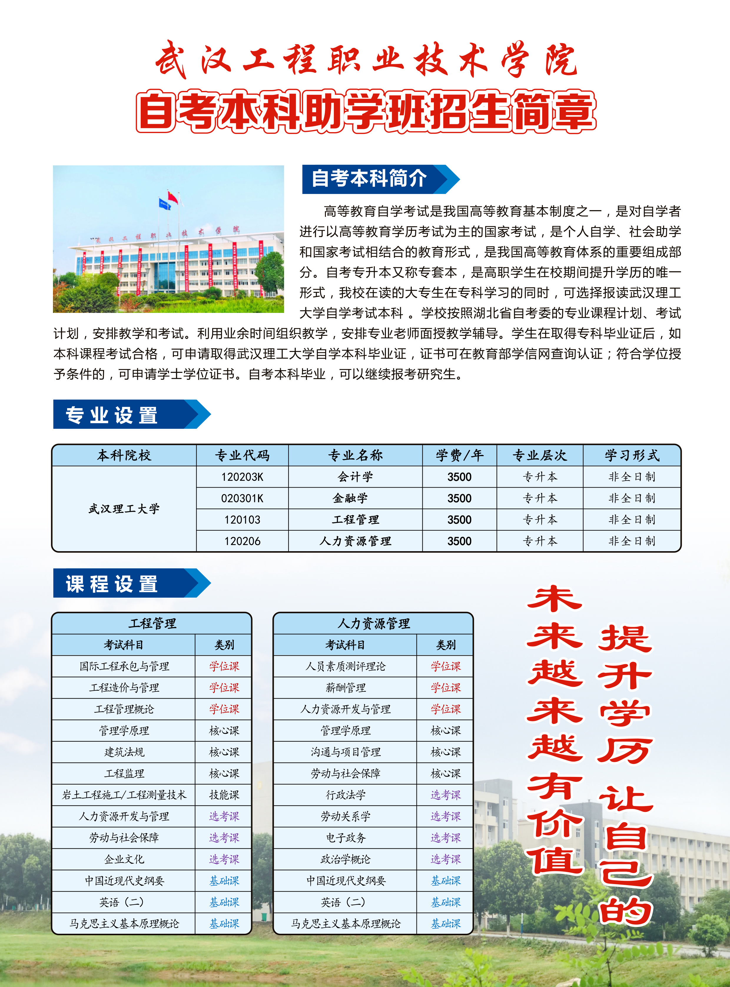 武汉工程职业技术学院自考本科招生简章