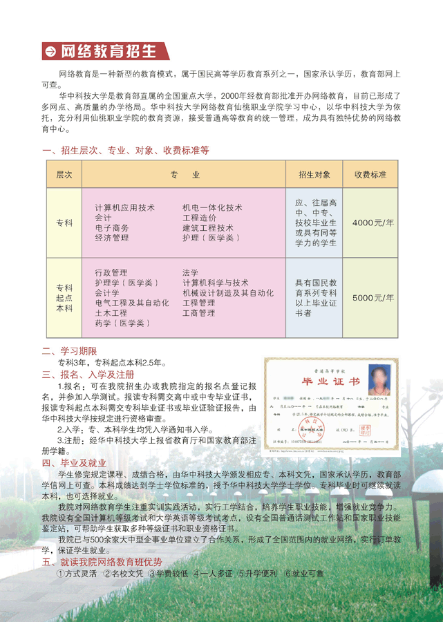 华中科技大学网络教育仙桃职业学院学习中心2016年招生简章