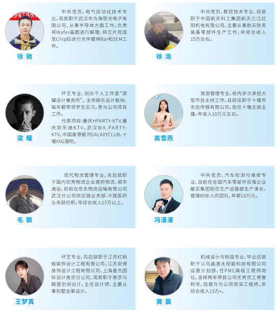 不止是朱超,还有湖北工业职业技术学院环境监测技术专业2016级毕业生王淑新,考取陕西科技大学资源与环境专业研究生;商务英语专业2017级毕业生徐佳薇,考取湖北文理学院社会工作专业研究生;新能源汽车技术专业2018级毕业生雷镇诺,考取山东交通学院交通运输专业研究生。