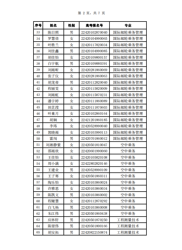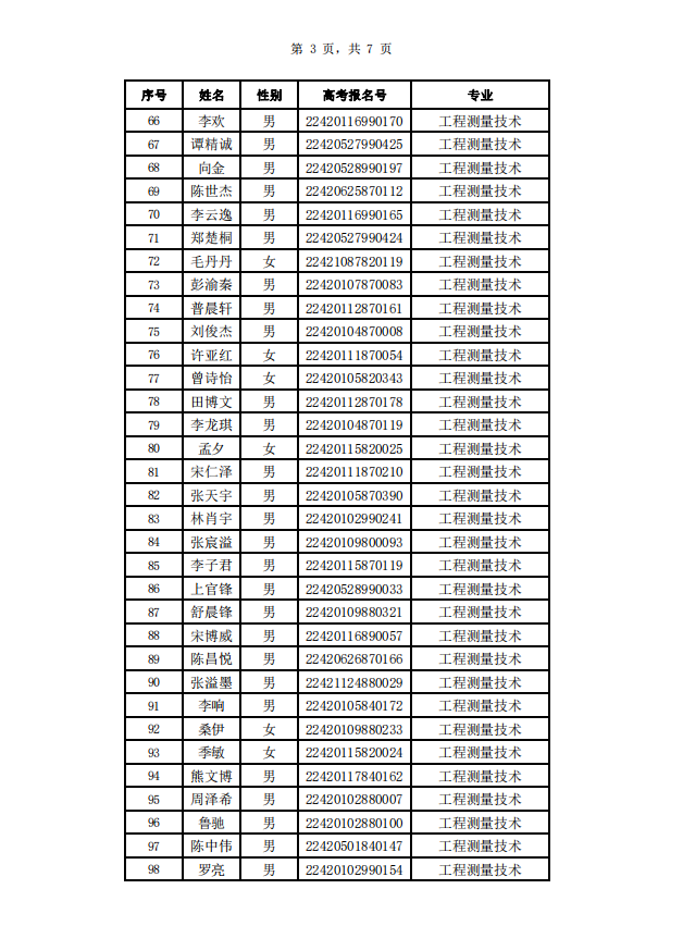 武汉城市职业学院2022年高职单招拟录取名单