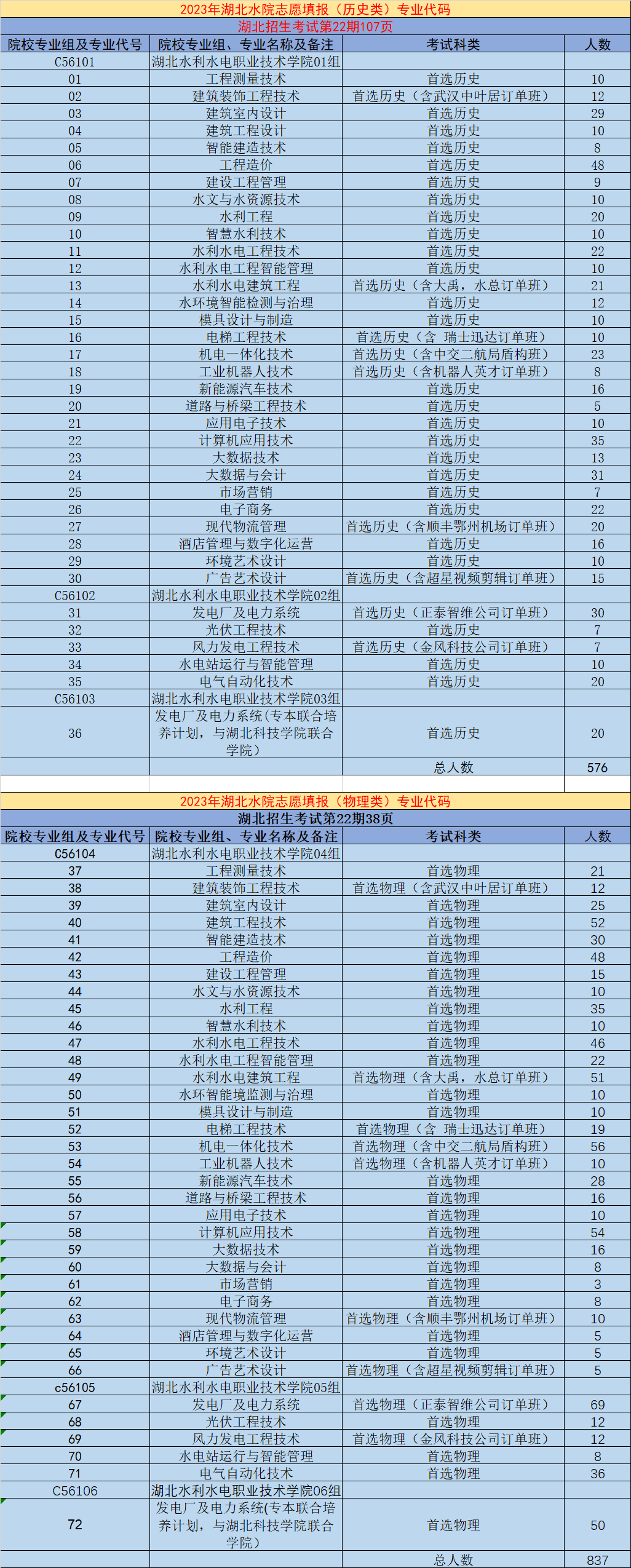 2023年省内专科普通批(物理\历史)专业组及专业代号