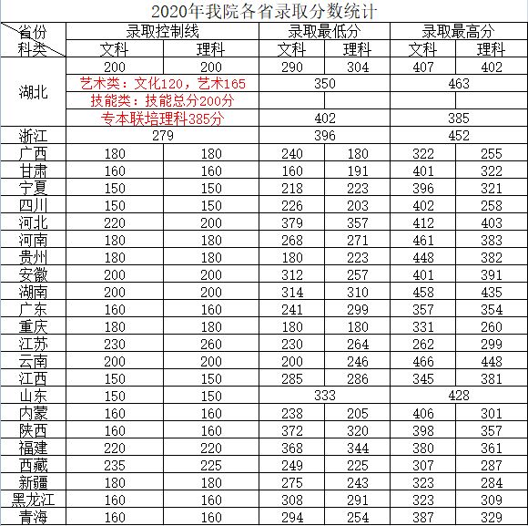 2020年我院各省录取分数统计
