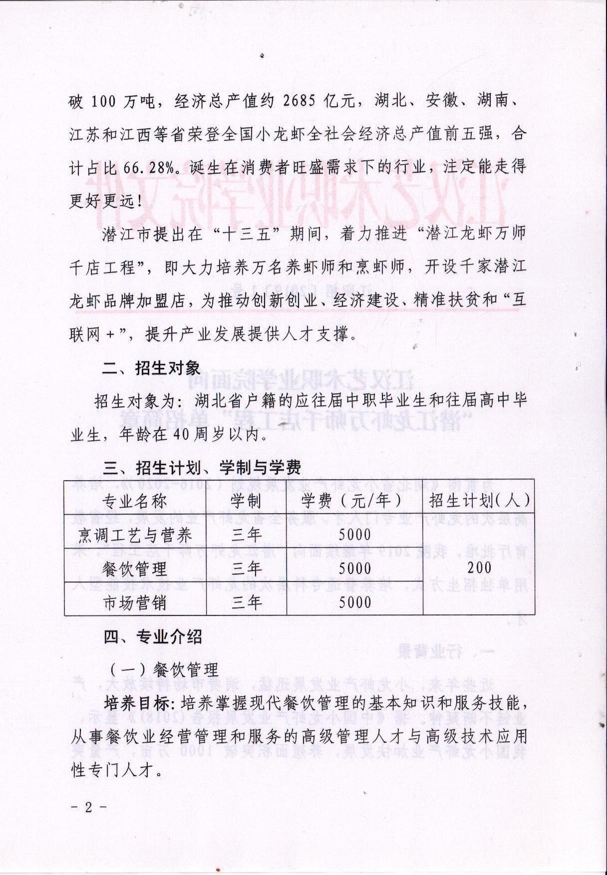 2019年江汉艺术职业学院“潜江龙虾万师千店工程”单招简章