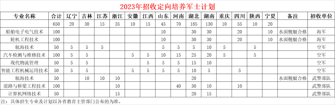湖北交通职业技术学院是经湖北省人民政府批准、教育部备案的全日制公办普通高等学校,由湖北省交通运输厅主办,1953年建校,2001年升格为高职院校。学校是国家优质专科高等职业院校、国家“双高计划”建设单位、全国交通职业教育示范院校和湖北省示范性高等职业院校,是全国高等职业院校服务贡献50强院校、全国60所高职院校服务贡献典型学校、100所高职院校学生发展指数优秀院校,是湖北交通职业教育集团理事长单位,也是湖北省公路交通职业教育品牌院校。学校是全国首批定向培养军士试点高校,2012年试点工作开展以来,先后携手海军,空军、武警部队,在道路与桥梁工程技术、汽车检测与维修技术、智能工程机械运用技术、计算机网络技术、现代物流管理、航海技术、轮机工程技术、船舶电子电气技术等8个专业开展合作。累计招收培养3700余名军士生,已有9届共1941名定向培养军士毕业生走上工作岗位。学校始终着眼部队需求,聚焦军士战斗力标准,遵循“为战育人、优势互补、严格标准、确保质量”原则,发挥交通专业优势,精准对接部队,融合共享军地资源,协同开展联教联训,定期组织联评联考,努力培养思想政治合格、专业技能过硬、军事基础牢固、综合素质优良的军士人才,全力服务军民融合国家战略。