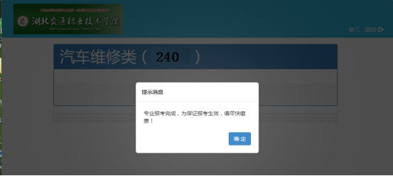 点击报考此专业,显示“专业报考完成,为保证报考生效,请尽快缴费!”,点击确定。