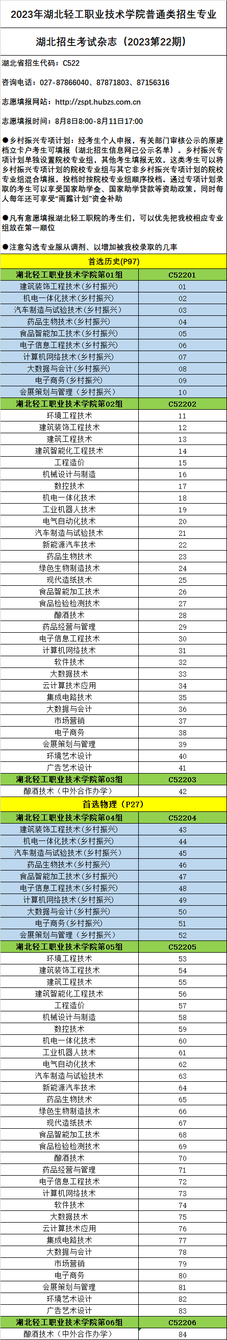 2023年湖北轻工职业技术学院普通类招生专业及代码