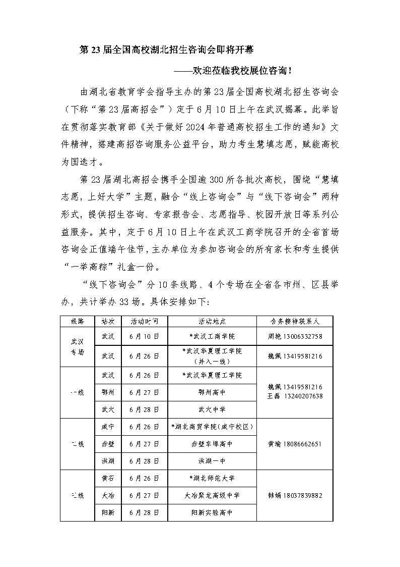 2024年第23届全国高校湖北招生咨询会即将开幕