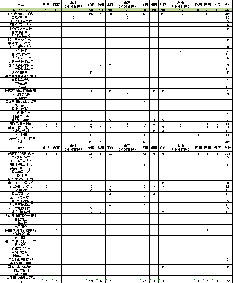 2024年各省招生计划(外省)