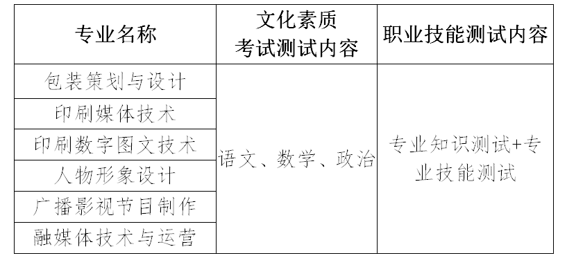 第十四条此次高职单招招生考试采取“文化素质+职业技能测试”的模式,考试时间为3月31日(其中文化素质测试时间为9:00-10:30,职业技能(专业知识)测试时间为11:00-12:00,职业技能(专业技能)测试时间为14:00-15:00。各专业考试方式具体见下表 。