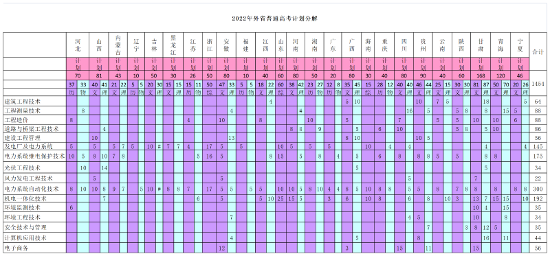 2022年三峡电院外省普通高考计划分解