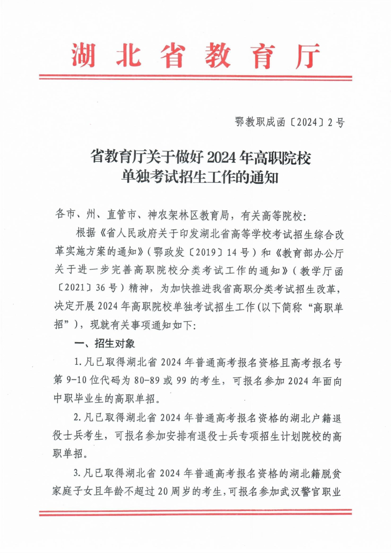 省教育厅关于做好2024年高职院校单独招生工作的通知
